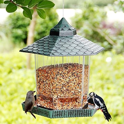Amazon Com Twinkle Star Comedero Para Pajaros Para Colgar En El Jardin Decoracion Exterior Forma Hexagonal Con Techo Color Verde Jardin Y Exteriores