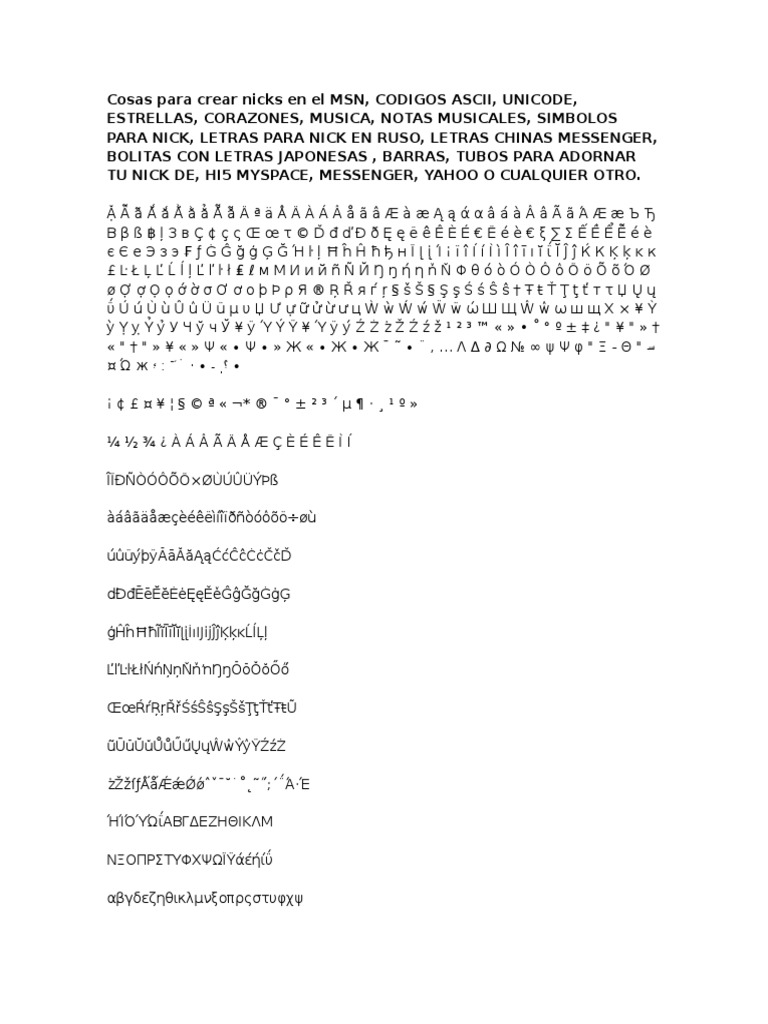 Cosas Para Crear Nicks En Lugar De Codigo Ascci