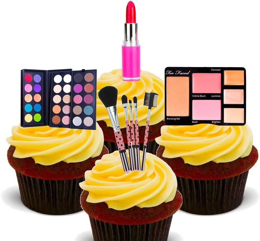 Decoraciones De Tarta Comestibles Con Diseno De Maquillaje Y Cosmeticos Pack De 24 Amazon Es Hogar