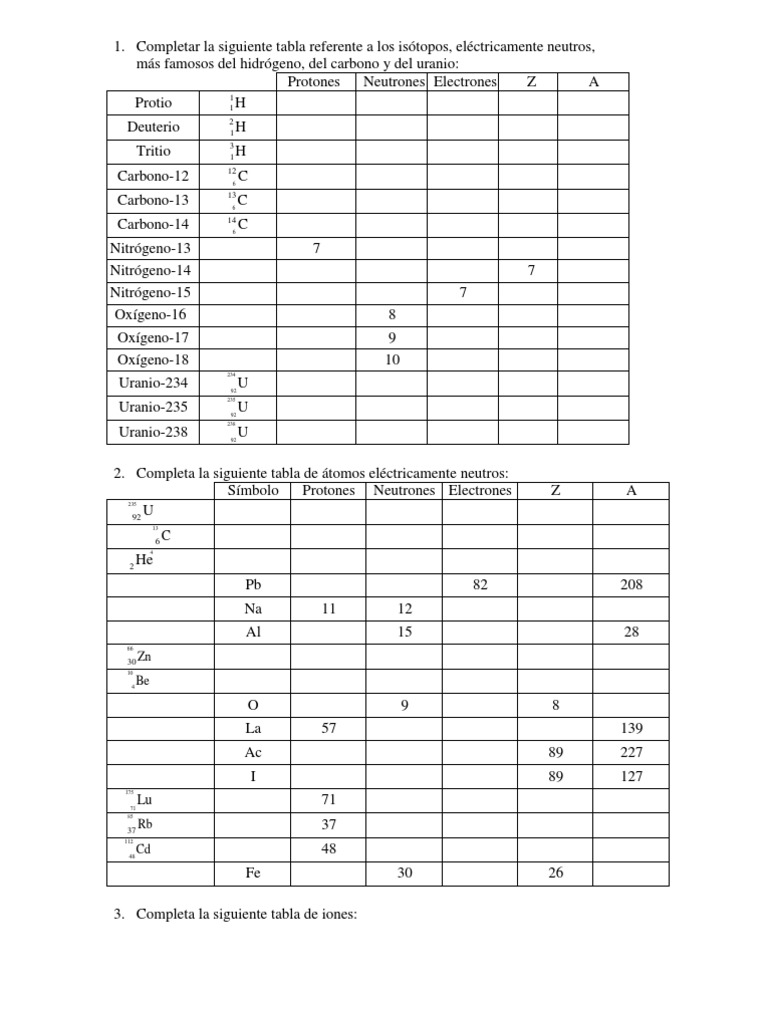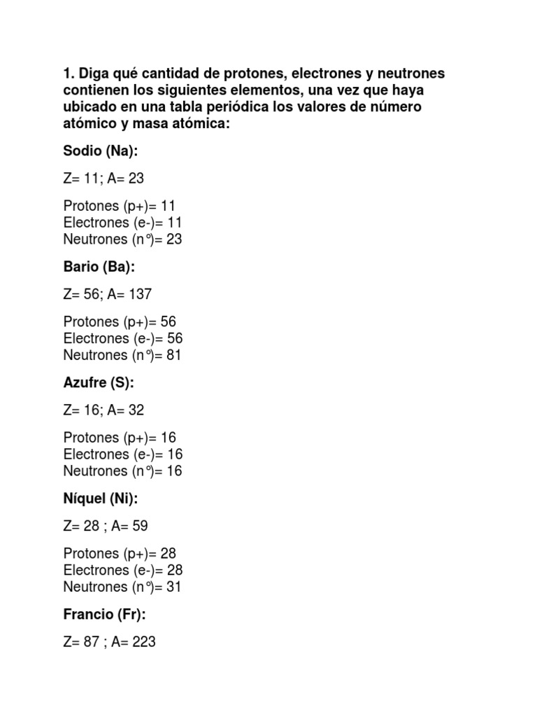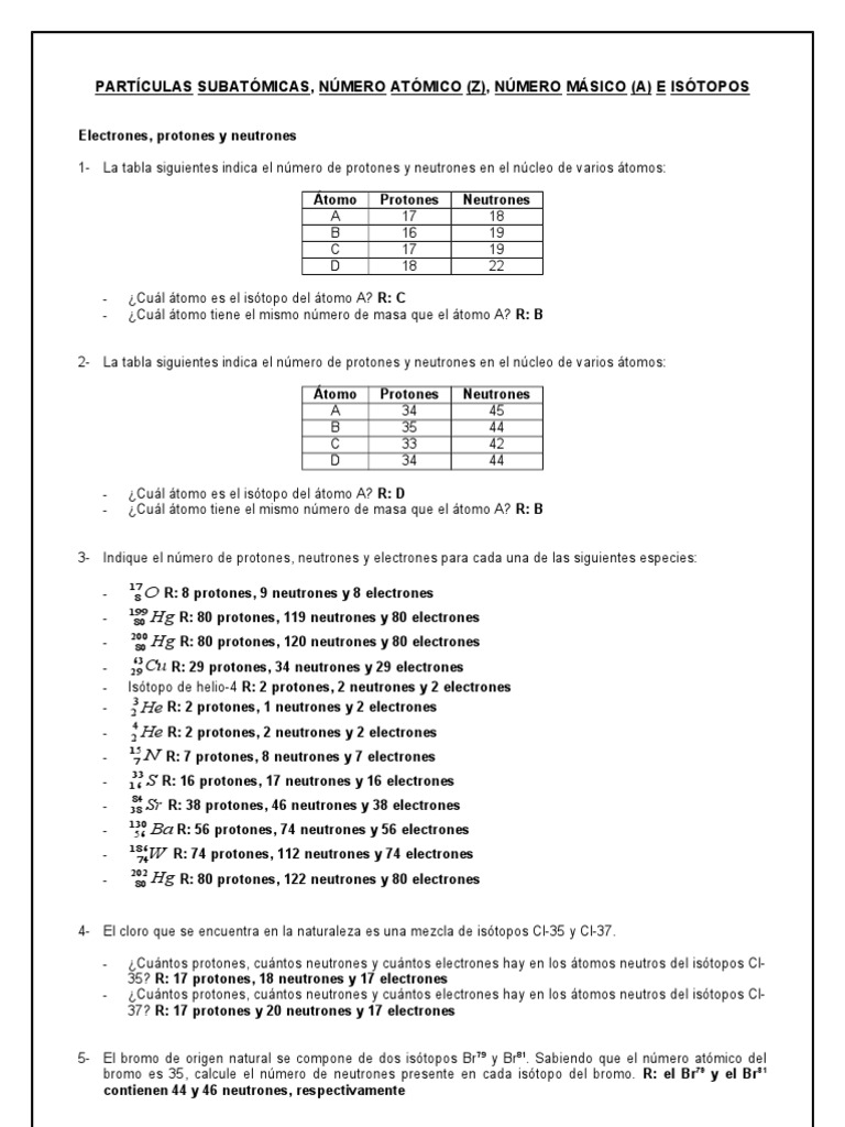 Protones Electrones Y Neutrones Muchos Ejercicios By Emmanuel Asesorias