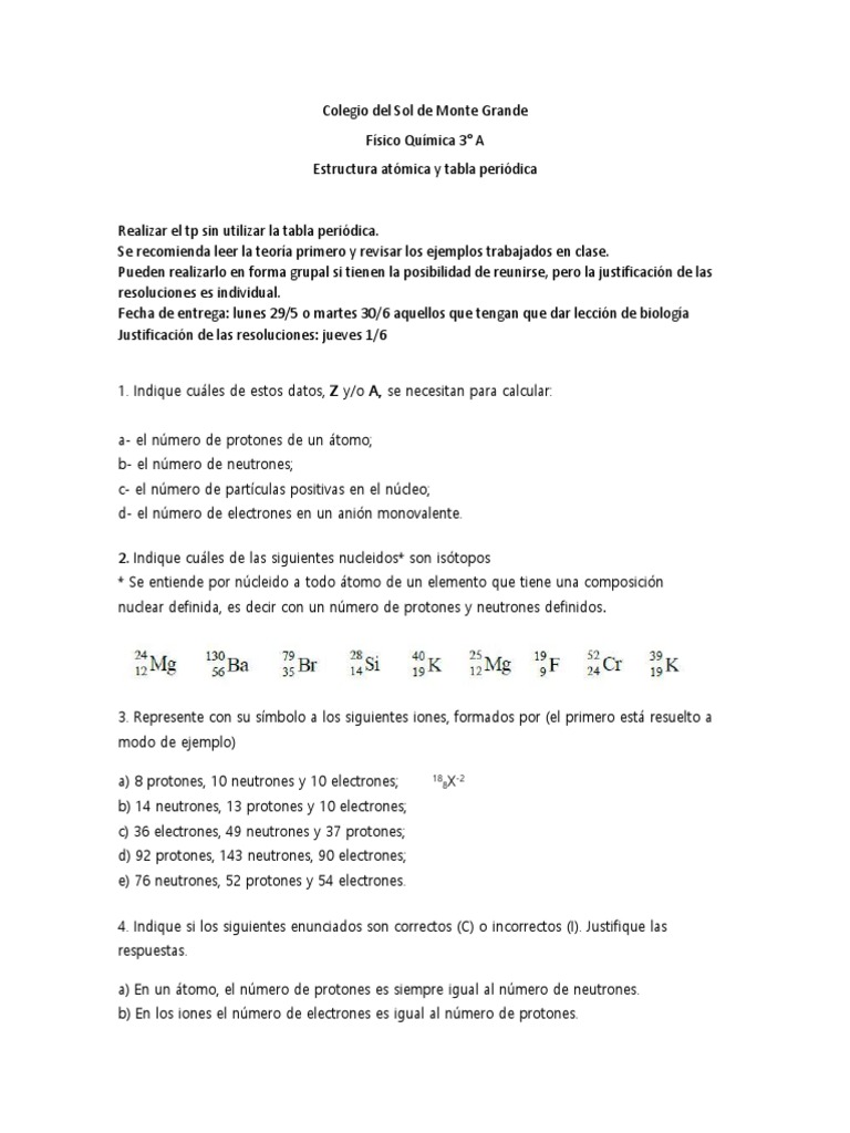 Ejercicios Y Respuestas Del Apartado Teoria Atomica Z A Isotopos N P E Iones Pdf Descargar Libre