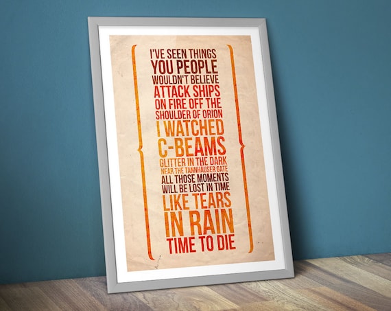 Blade Runner Movie Quote Tears In Rain Bladerunner Poster Etsy