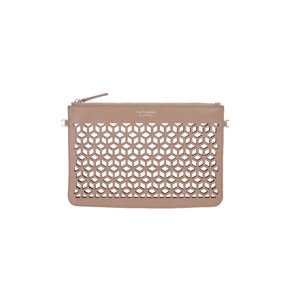 Taupe Cutwork Leather Bag Elisa Eduardo Rivera