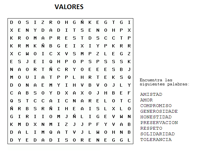 Valores Cartel Y Juego De Buscar Palabras