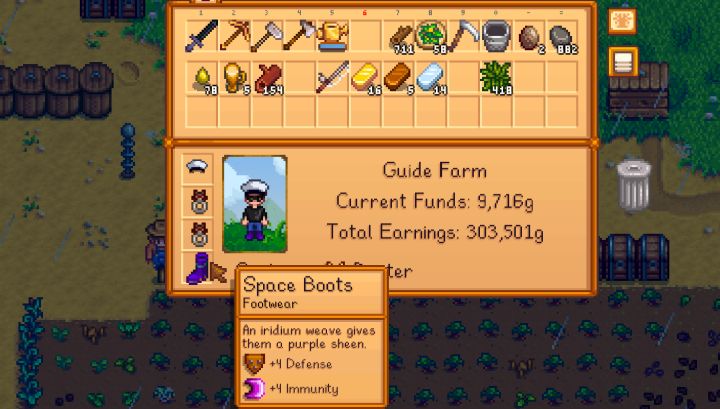 The main set of tools you need on your farm in Stardew Valley can all be upgraded four total times by visiting Clint, the local blacksmith The axe, watering can, hoe, pickaxe, and the trash can on your inventory screen can all be upgraded to copper, then steel, then gold, and then finally to iridium. In the openended country life RPG Stardew Valley, you’ve inherited your grandfather’s old farm plot Armed with handmedown tools and a few coins, you set out to begin your new life Genres. The value of wine in Stardew Valley is completely dependent on the base value of the fruit used to make it Therefore, the higher value of the fruit, the higher value of the wine In addition, once the wine is placed into a cask to age, the value then doubles (with an iridium star).