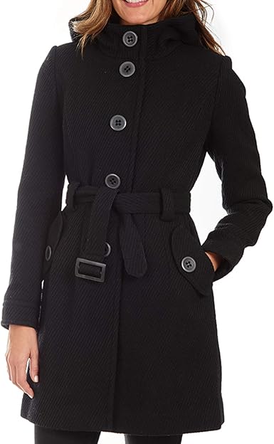 Amazon Com Donatella Abrigos Largos De Lana Para Mujer Con Capucha Cinturon Y Cuello De Pie M Clothing
