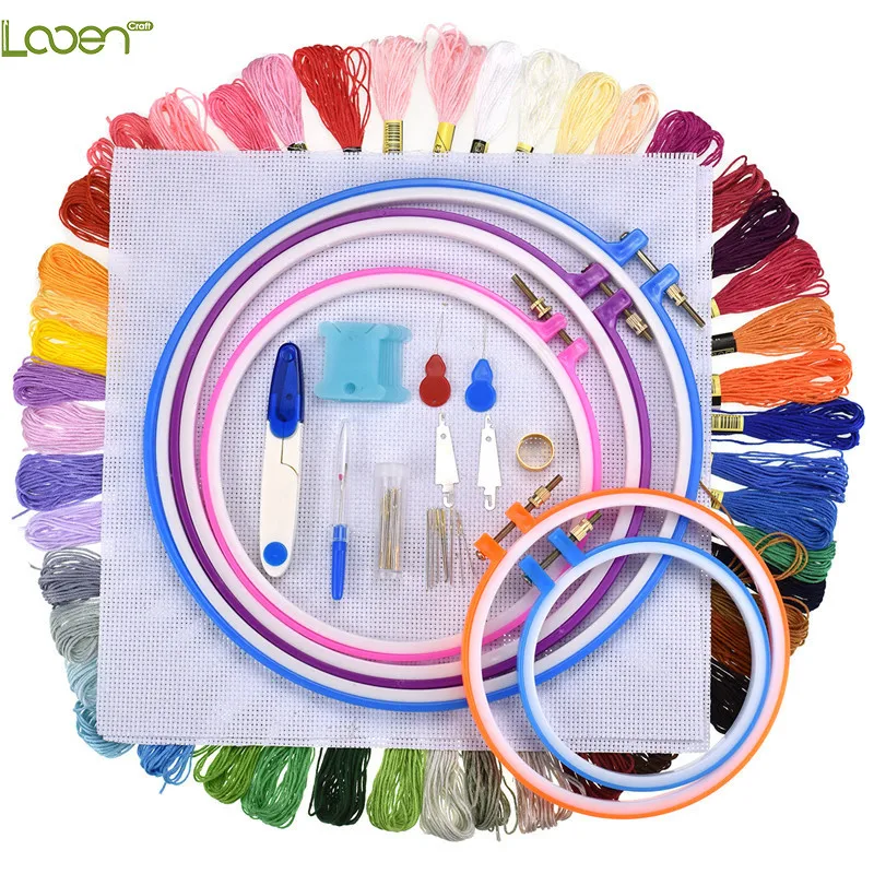 Diyarts Kit De Punto De Cruz Juego De Agujas Bordado Con Hilo Bordado De 50 Colores Herramientas Pin De Cuerda De Bricolaje Para Coser Hilos De Tejer Kits Labor De Aguja