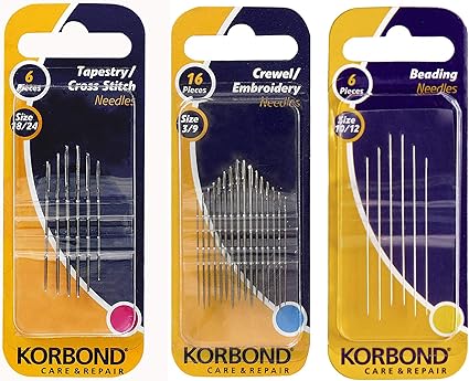 Korbond Pack De 3 Juegos De Agujas De Coser 16 Agujas Para Bordar 6 Agujas De