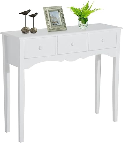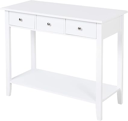 Homcom Mueble Mesa Recibidor Tipo Consola De Entrada Y Mesa Auxiliar Con 3 Cajones En Color Blanco Y Material De Madera 100x32x85cm Amazon Es Hogar