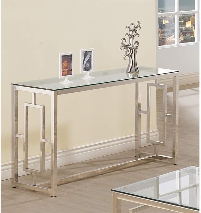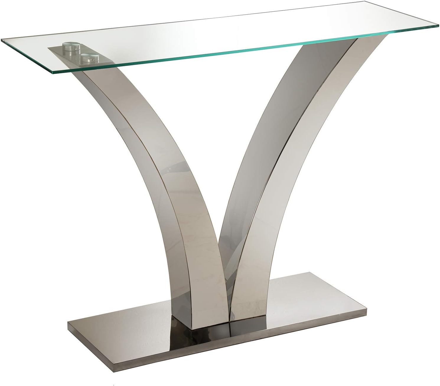 Drw Consola Mesa Recibidor Pie Cromado V Y Cristal Transparente 110x35x79cm Amazon Es Hogar