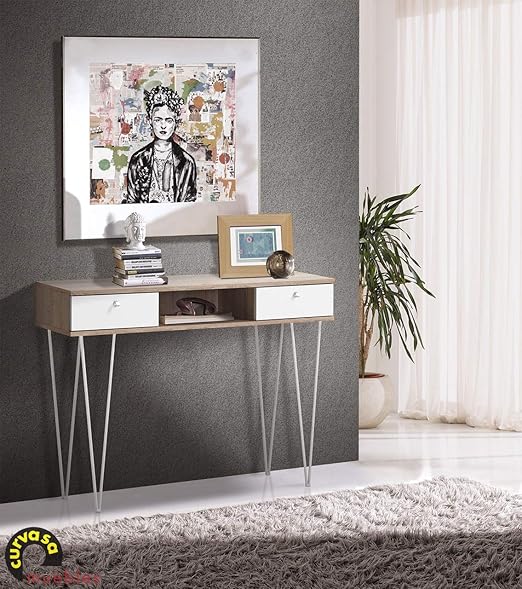Curvasa Recibidor Consola Roble Sonoma 100 X 32 X 75 Con Dos Cajones Apolo Amazon Es Hogar