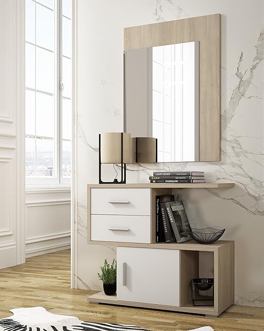 Si tienes un mueble recibidor o una consola para dejar las llaves y demás, verás una entrada ordenada y con ganas de ver más Solo tienes una oportunidad para crear una buena primera impresión, y lo primero que verán tus invitados de tu casa será la entrada Pero tranquilo, con estas consolas tendrás la dosis de estilo más que cubierta. HOMCOM Mesa Auxiliar para la Entrada con 2 Cajones y 1 Estante Inferior para Gran Espacio de Almacenaje para Muebles de Recibidor Tipo Consola Clásica Vintage 106x36x85cm Blanco 4,0 de 5 estrellas 6 103,99 € 103,99 € 109,99 € 109,99€. Amplio catálogo para comprar online conjuntos de consolas y espejos para recibidores Cuando nos decidimos a decorar y amueblar la entrada de nuestro hogar o bien a renovar nuestro recibidor disponemos de bastantes opciones, si bien, una de las opciones más prácticas y decorativas es el emplear una consola acompañada de un espejo y muchas veces se nos presenta el dilema de que espejo.