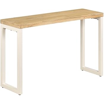 Unfadememory Mesa Consola Recibidor De Entrada Mesa Alta Cocina Mueble Auxiliar Mesa De Comedor Escritorio Para Oficina Estilo Moderno Madera Maciza De Mango Y Acero 1x35x76cm Blanco Amazon Es Hogar