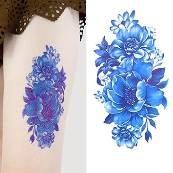 Amazon Com Oottati Mujeres Estampado Floral Brazo Pecho Tatuaje Temporal Azul Mandala Flor 2 Hojas Beauty
