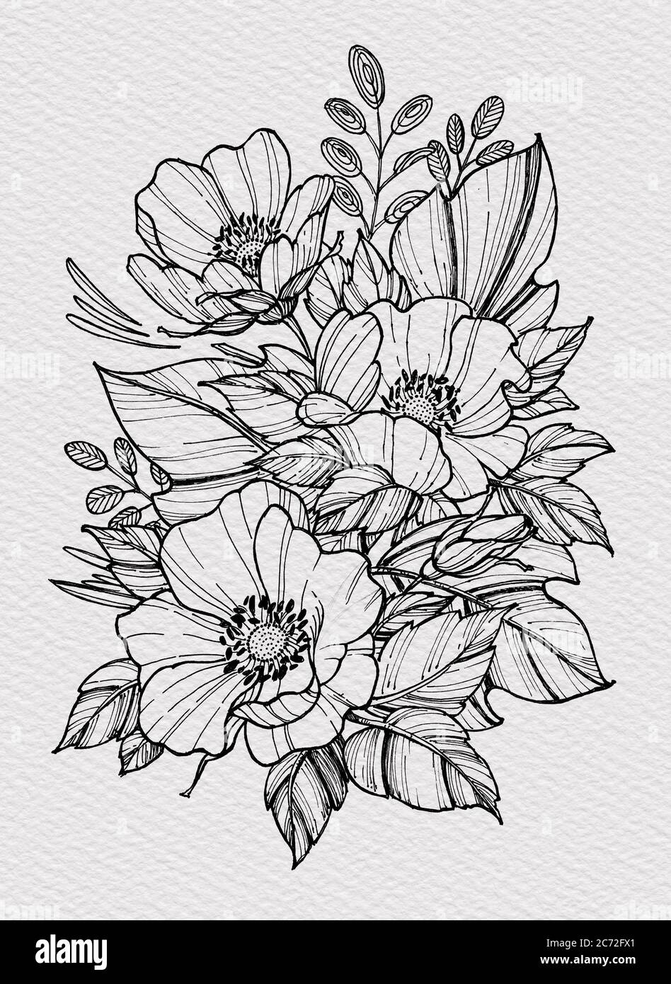 Ilustracion De La Rosa Amapola Ilustracion Dibujo De Flor De Anemona Blanco Y Negro Con Arte Lineal Sobre Fondos Blancos Y Mas Vectores Libres De Derechos De Abstracto Istock