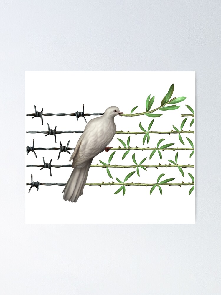 Poster Paloma Con Rama De Olivo Y Alambre De Puas De Lightidea Redbubble