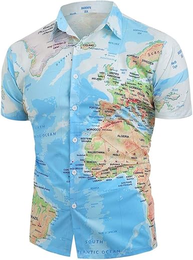 Camisa Estampada Mapamundi Para Hombre Hawaiana Blusa De Manga Corta De Verano Slim Fit Camisas Azul L Amazon Es Ropa Y Accesorios