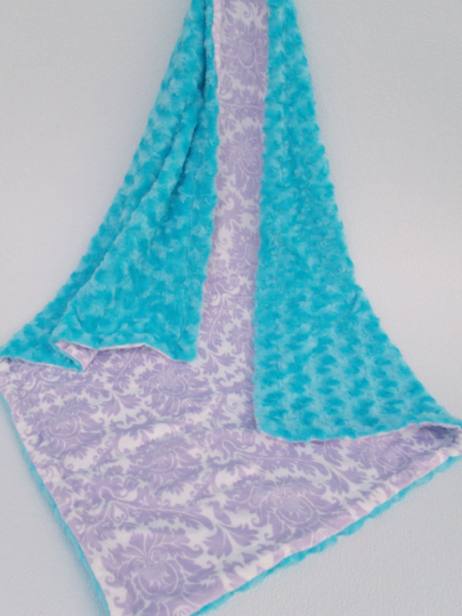 Lavender Damask And Aqua Swirl Minky Baby Blanket Baby Girl Blanket