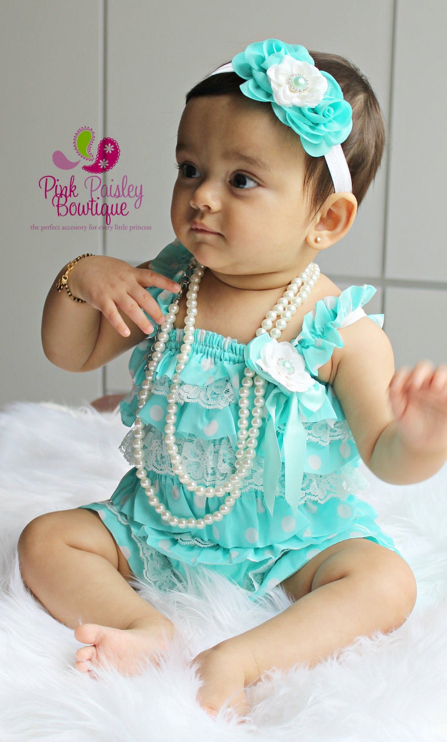 Aqua Romper Set Baby Girl Outfits Baby Girl Romper Baby Girl Clothes Cutebows4girls