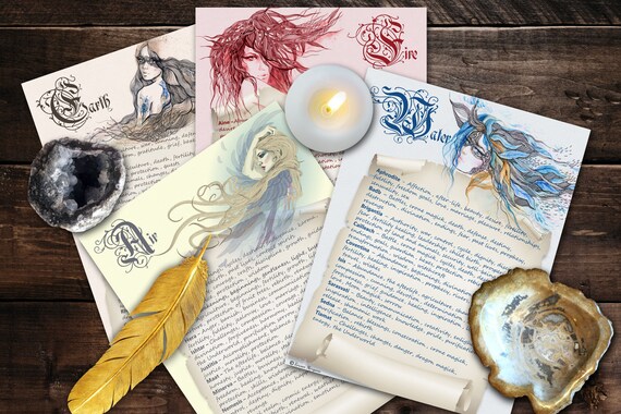 Element Goddesses Tierra Aire Fuego Y Agua 4 Paginas Etsy