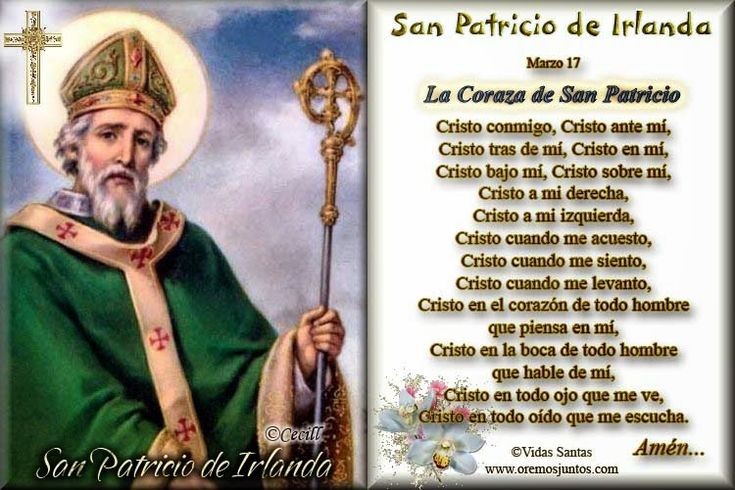 Padre Moises Cuevas Torres y al fondo Oracion en Len. Esta es una muy antigua oración de San Patricio, patrono de Irlanda, que con el paso de los siglos se ha convertido en una plegaria de gran efectividad contr. En el día de San Patricio, el Arzobispo de Dublín y Primado de Irlanda, Mons Eamon Martin, alentó a rezar la oración conocida como “La coraza de San Patricio” para hacer frente al.