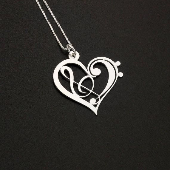 Collar Corazon Con Clave De Sol Y Fa De Plata De Ley 925 Colgantes Para Regalar Amazon Es Handmade