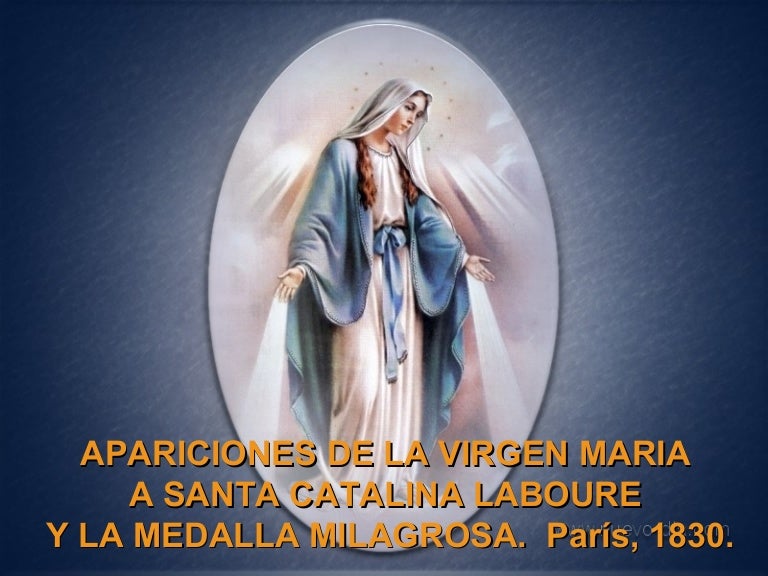 La primera aparición de la Virgen Milagrosa La primera aparición de la historia de la Virgen de la Medalla Milagrosa tuvo lugar casi a media noche del 18 de Julio de 10 Catalina, que se encontraba acostada, se levantó, siguiendo las indicaciones de la voz de un niño, para ir a la capilla donde la estaba esperando la Virgen. Virgen de la Cueva (1) Virgen de la Fuencisla (1) Virgen de la Fuensanta (1) Virgen de la Medalla Milagrosa (1) Virgen de la Paloma (1) Virgen de las Angustias (1) Virgen de las Espinas Floridas (1) Virgen de los Dolores (1) Virgen de Lourdes (1) Virgen de Monserrat (1) Virgen de Nimega (1) Virgen del Buen Suceso (1) Virgen del Buen Viaje (1. El 27 de noviembre de 10 la Virgen Santísima se le aparece de nuevo a Catalina Labouré Esta advocación está unida a dos hechos de la historia del Opus Dei En la fiesta de la Virgen de la Medalla Milagrosa, en 1924, falleció don José Escrivá, padre de san Josemaría Y otro 27 de noviembre, en 19, se comunica que la Obra va a ser erigida en Prelatura Personal.