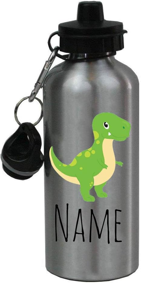 Amazon Com Personalizado Personalizado Verde T Rex Dinosaurio Aluminio Onzas Botella De Agua Deportiva De Verano Para Ninos 2 Tapas Personalizable Plata Aluminio Home Improvement
