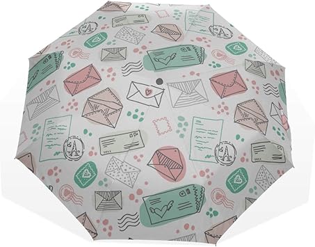 Paraguas De Viaje Sobre Y Carta De Amor Papel Anti Uv Compacto 3 Fold Art Ligero