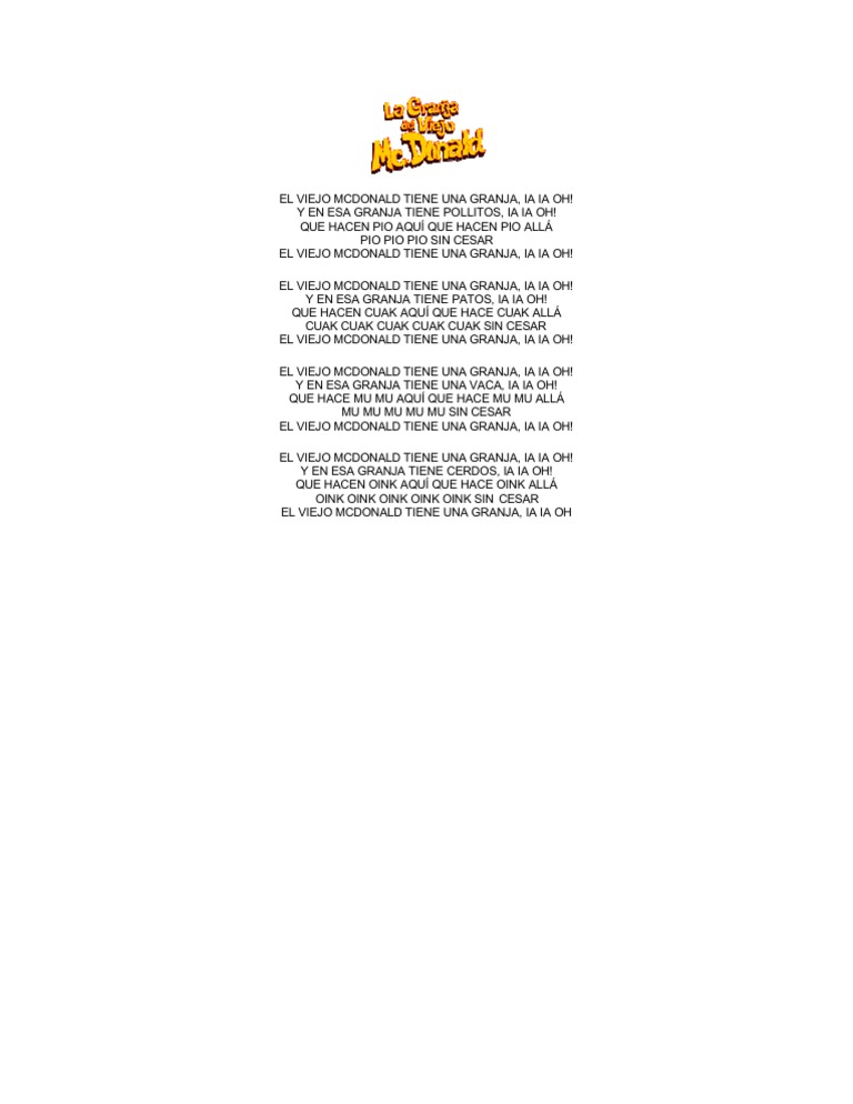 Doc Cancion El Viejo Mcdonald Diego U Matom Academia Edu