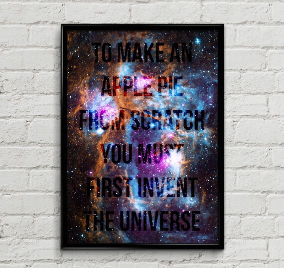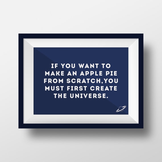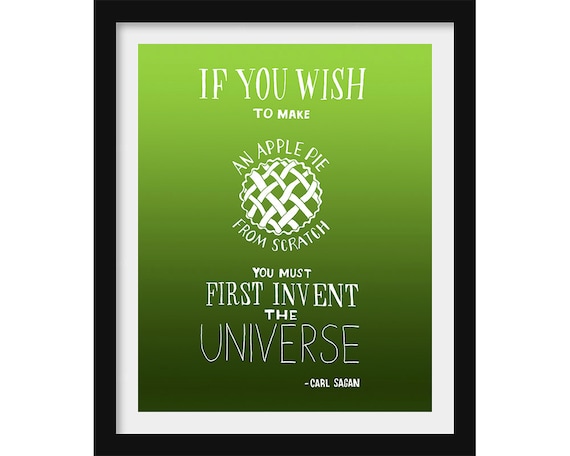 Pie Sayings and Quotes Below you will find our collection of inspirational, wise, and humorous old pie quotes, pie sayings, and pie proverbs, collected over the years from a variety of sources If you wish to make an apple pie from scratch, you must first invent the universe Carl Sagan. • Millions of unique designs by independent artists Find your thing. This inspirational quote from Carl Sagan makes the perfect inspiring wall art print for an astronomy gift, classroom art, or science decor for your home It is based on a hand lettered quote from my sketch book If you want to make an apple pie from scratch, you must first invent the universe.