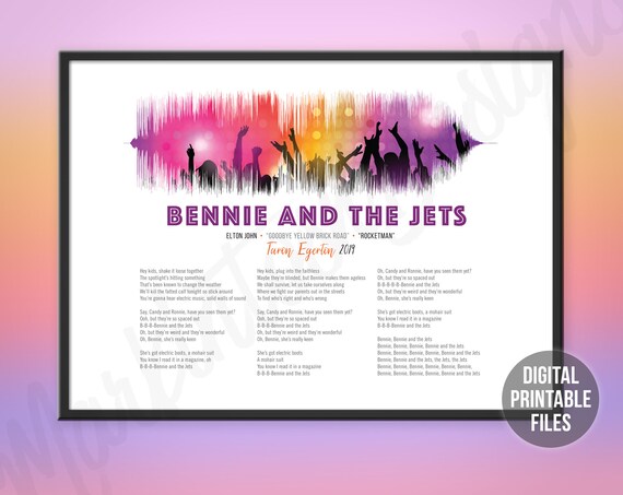 Bennie And The Jets Custom Sound Wave And Lyrics Art Etsy