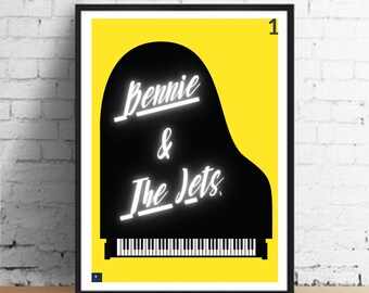 Elton John Bennie And The Jets Music Print Music Poster Etsy