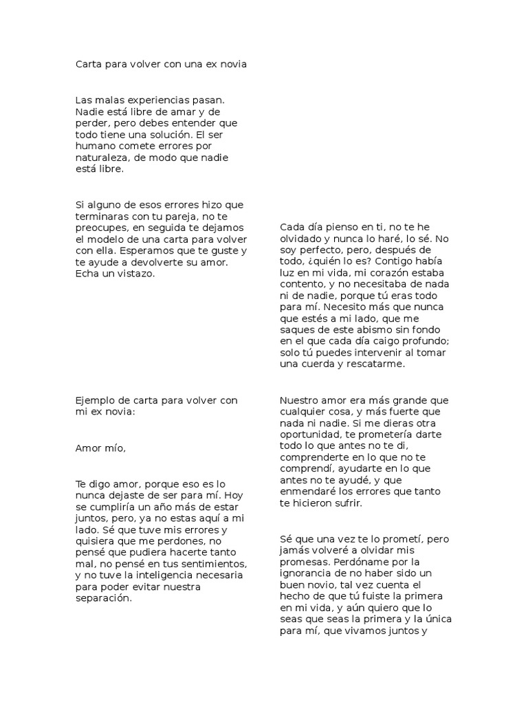 Carta Para Volver Con Una Ex Novia Amor