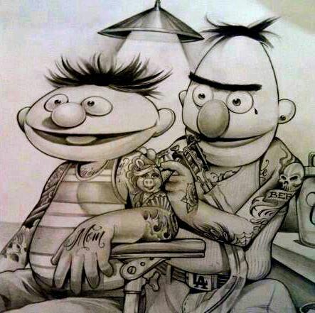 Bert And Ernie Muppets Tattoo Lowrider Art Cartoon Drawings