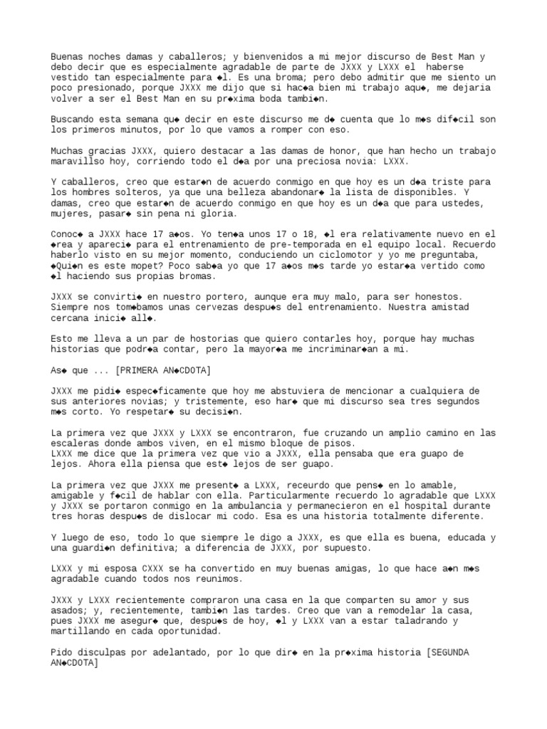 Discursos De Boda Divertidas Discurso De La Novia Brindis De Boda Novios Boda Lo Prometo Damas De Honor Ceremonia De Boda Boda De La Hermana Regalos De Boda How to Give a Good Best Man's Speech Giving a Best Man Speech doesn't have to be scary or intimidating. 12jul17 Bonitos discursos cortos para ceremonia de Bodas Discursos para matrimonio Amor. Un discurso de boda es el gran ejemplo de que lo bueno, si es breve, dos veces bueno No te andes por las ramas, da datos concretos, emociona y el público será tuyo Siempre, es OBLIGATORIO que lo leas en voz alta antes para ensayarlo No cuando acabes, sino a medida que lo vas escribiendo Y digo en voz alta, no para ti interiormente.