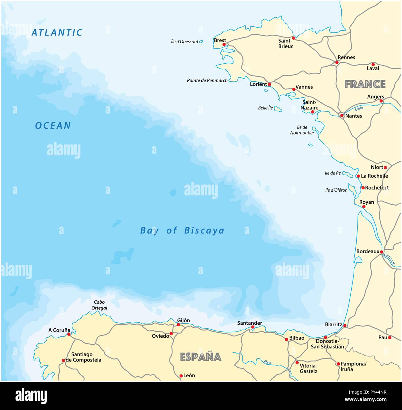 Bahia De Biscaya Mapa Vectorial Espana Francia Imagen Vector De Stock Alamy