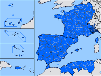El Reino Unido de Francia y España, comúnmente conocido como FranciaEspaña y en menor medida como Unión de Borbón o Monarquía Católica es el país más grande de Europa, además de ser su estado más poblado y principal potencia del continente A nivel mundial, posee territorio en 3 continentes (África, Europa y Norteamérica) además de una reclamación territorial en la Antártida. Mapa de España y Francia 2647x2531 / 1,85 Mb Ir al mapa Mapa detallado grande de España y Portugal con ciudades 3869x2479 / 2,02 Mb Ir al mapa Mapa del sur de España 09x1301 / 692 Kb Ir al mapa Mapa del norte de España 2140x926 / 610 Kb Ir al mapa Mapa físico de Portugal y España. El Reino Unido de Francia y España, comúnmente conocido como FranciaEspaña y en menor medida como Unión de Borbón o Monarquía Católica es el país más grande de Europa, además de ser su estado más poblado y principal potencia del continente A nivel mundial, posee territorio en 3 continentes (África, Europa y Norteamérica) además de una reclamación territorial en la Antártida.