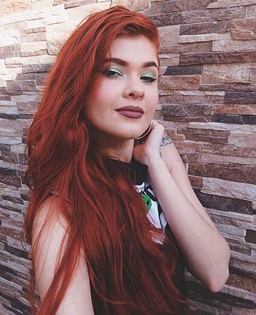 Amazon Com Dark Orange Copper Red 350 Color High Temperature Long Synthetic Hair Curly Wavy Wig Natural Hairline Free Part Handmade Lace Front Wigs For Women Girls Synthetic Cosplay Drag Queen Wig 24 Beauty