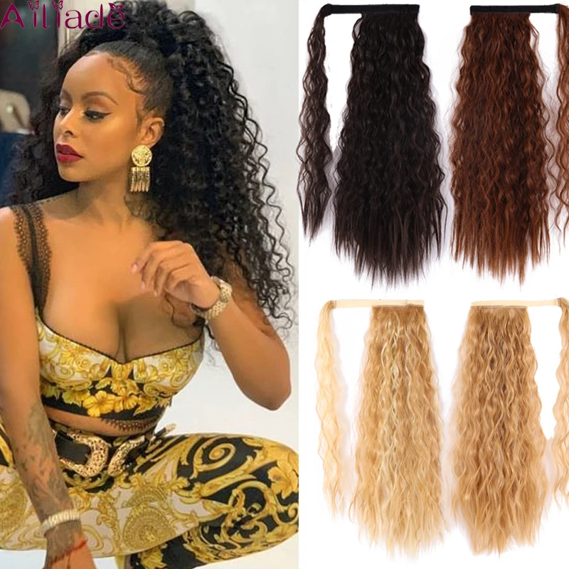 Ailiade Extensiones De Cabello Rizado Con Clip Para Mujer Cola De Caballo Pelo Sintetico Resistente Al Calor Colas De Caballo Sinteticas Aliexpress
