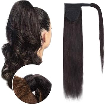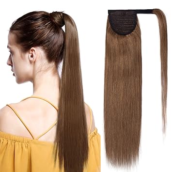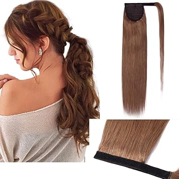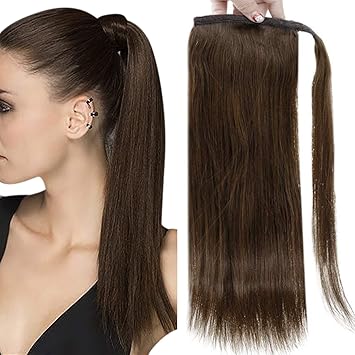 Amazon Com Full Shine 18 Pulgadas Extension De Cola De Caballo Pelo Natural Envoltura Alrededor De Colas De Caballo Medio Marron Pelo Humano Clip En Colas De Caballo 1 Pieza Pelo 2 Oz