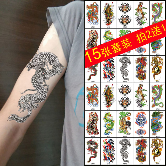 15 Pieces Of Tattoo Stickers Waterproof Men And Women Flower Arm Simulation Lasting Dragon Totem Half