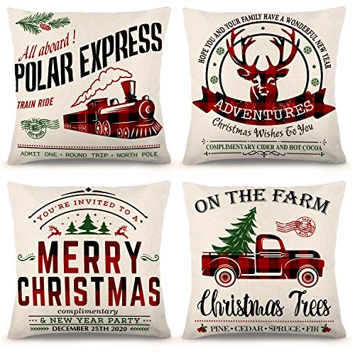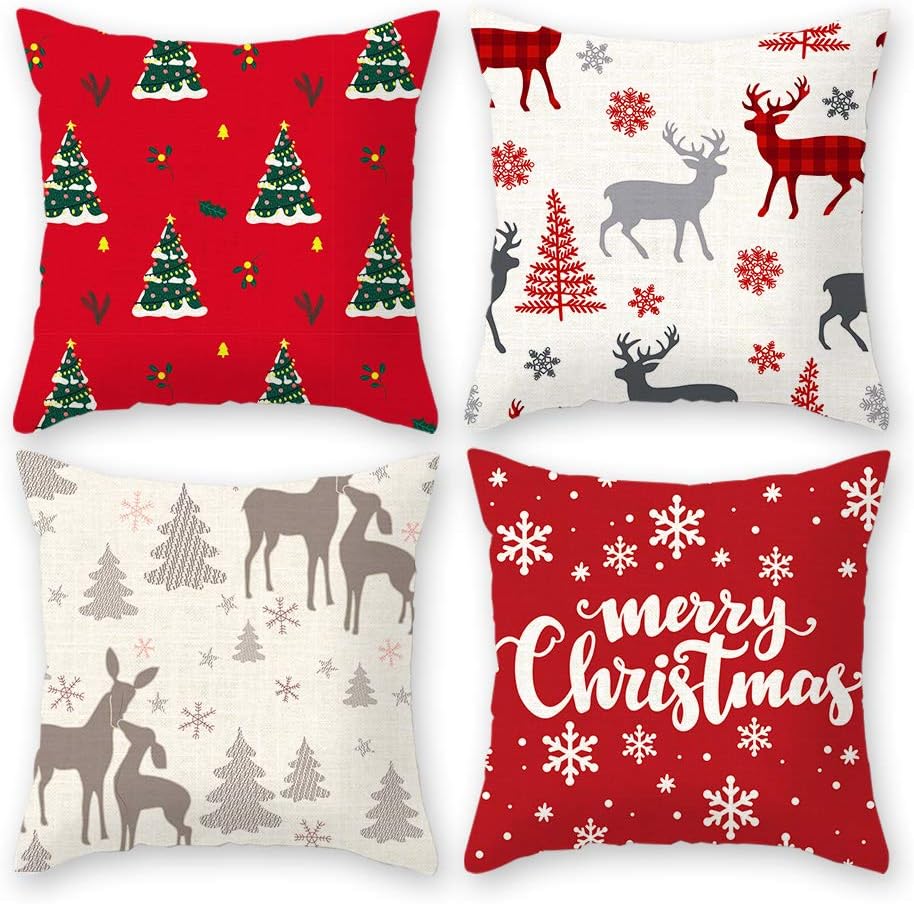 Amazon Com Imandale Christmas Decorative Cushion Covers Funda Para Cojines De Navidad 18 X18 Red Reindeer Pillow Cases Set Of 4 For Home Dorm Office And Car White Red1 Home Kitchen