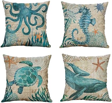Fossrn 4pc Conjunto Fundas Cojines 45x45 Vida Marina Coral Tortuga Marina Corcel De Mar Pulpo Ballena Funda De Cojines Para Sofa Jardin Cama Decorativo 01 Amazon Es Ropa Y Accesorios