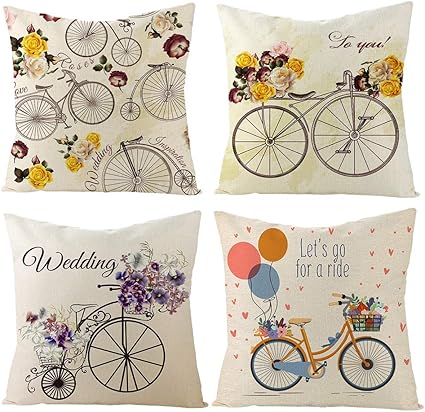 Fossrn Fundas Cojines 45x45 Moderno Flores Bicicleta Fundas De Almohada Decorativo Sofa Baratos 01 Amazon Es Ropa Y Accesorios