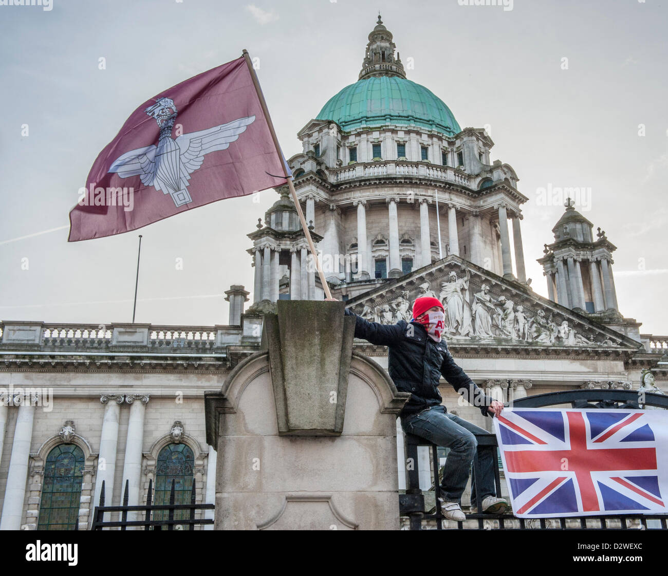 Protesters have tried to storm Belfast City Hall after councillors voted to remove the Union flag from the building Hundreds of loyalists took to the street and eyewitnesses reported seeing Irish. A spontaneous protest movement about Belfast city council’s decision in early December to restrict the number of days the Union flag flies above city hall has morphed into a wider organisation. Northern Ireland is experiencing a period of sustained street protests by loyalists who oppose the decision taken by Belfast City Council to only fly the Union Flag on Belfast City Hall on a number of designated days each year (mainly royal birthdays) Previously the flag had flown 365 days each year.