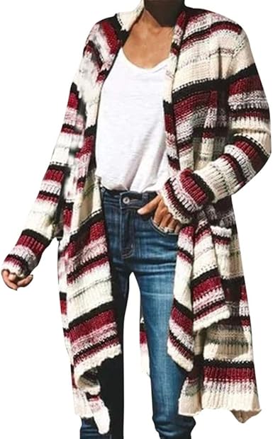 Chaquetas Punto Para Mujer Cardigans Mujer Ropa De Otono Rayas Cardigans Cardigan De Punto Manga Larga Cardigan De Punto Sin Cierre Jersey De Punto Rojo L Bust 100cm 39 37 Amazon Es Ropa Y Accesorios