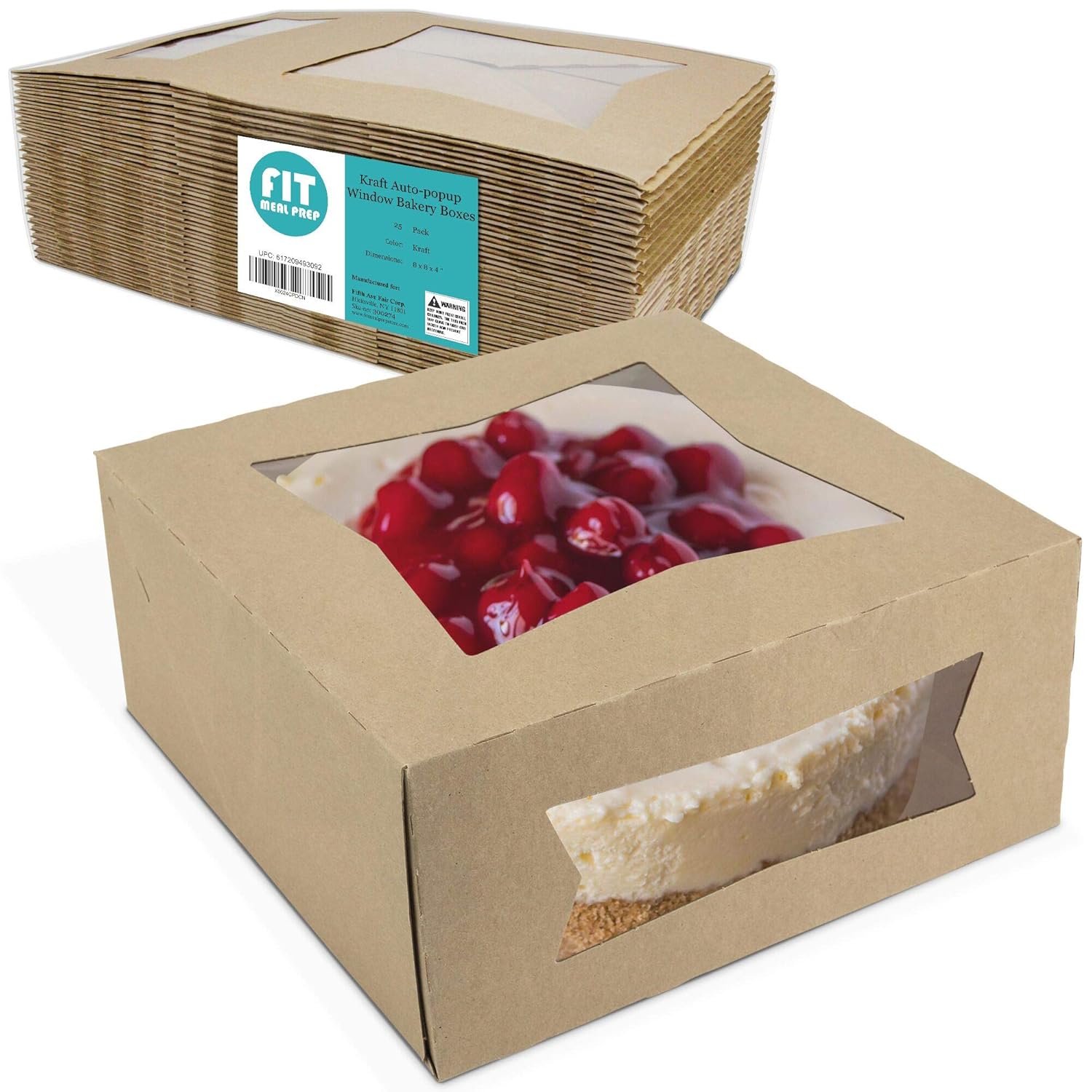 Amazon Com 25 Paquetes Caja De Pastel Kraft Con Ventana 8 X 8 X 4 Pulgadas Embalaje De Carton Automatico Emergente Para Tartas Magdalenas Galletas Y Pasteleria Restaurante Envases De Panaderia Y
