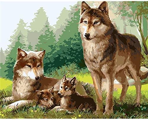 Qjhxd Lobo Familia Animales Bricolaje Pintura Por Kits De Numeros Pintura Acrilica Sobre Lienzo Para Colorear Por Numeros Imagen De Arte De Pared 40x50cm Amazon Es Bricolaje Y Herramientas