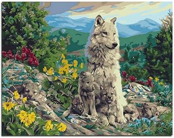 Csyhl Familia De Lobos Para Colorear Animales Con Numeros Sobre Lienzo Acrilico Para Adultos Amazon Es Juguetes Y Juegos